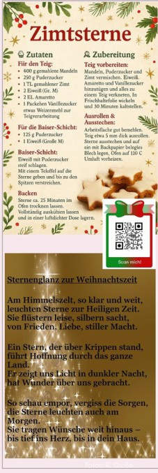 Mittwoch, 3. Dezember, 16.00 – 18.00 Uhr (Weihnachtsbäckerei)