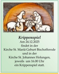 am 24.12.2025 jeweils 16 Uhr in Bischofferode und Holungen