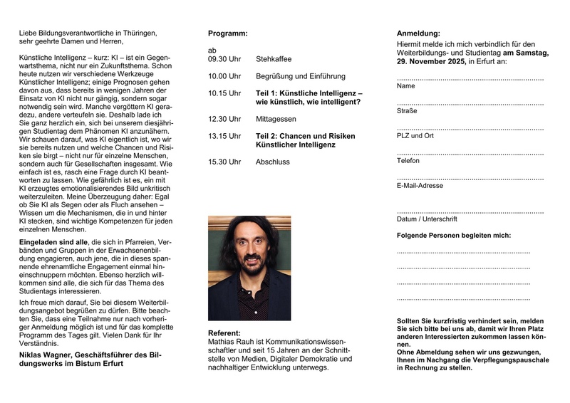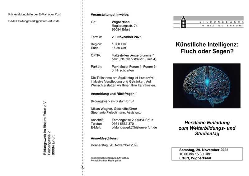 Bildungswerk BE Studientag 29.11.25 EF: Künstliche Intelligenz -Fluch oder Segen?