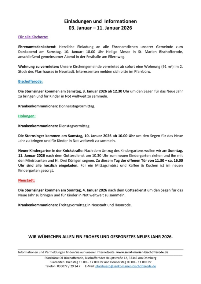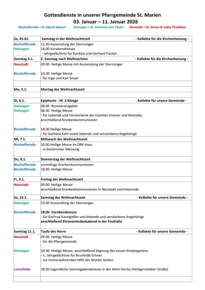 Gottesdienstordnung & Vermeldung vom: 03.01.-11.01.2026