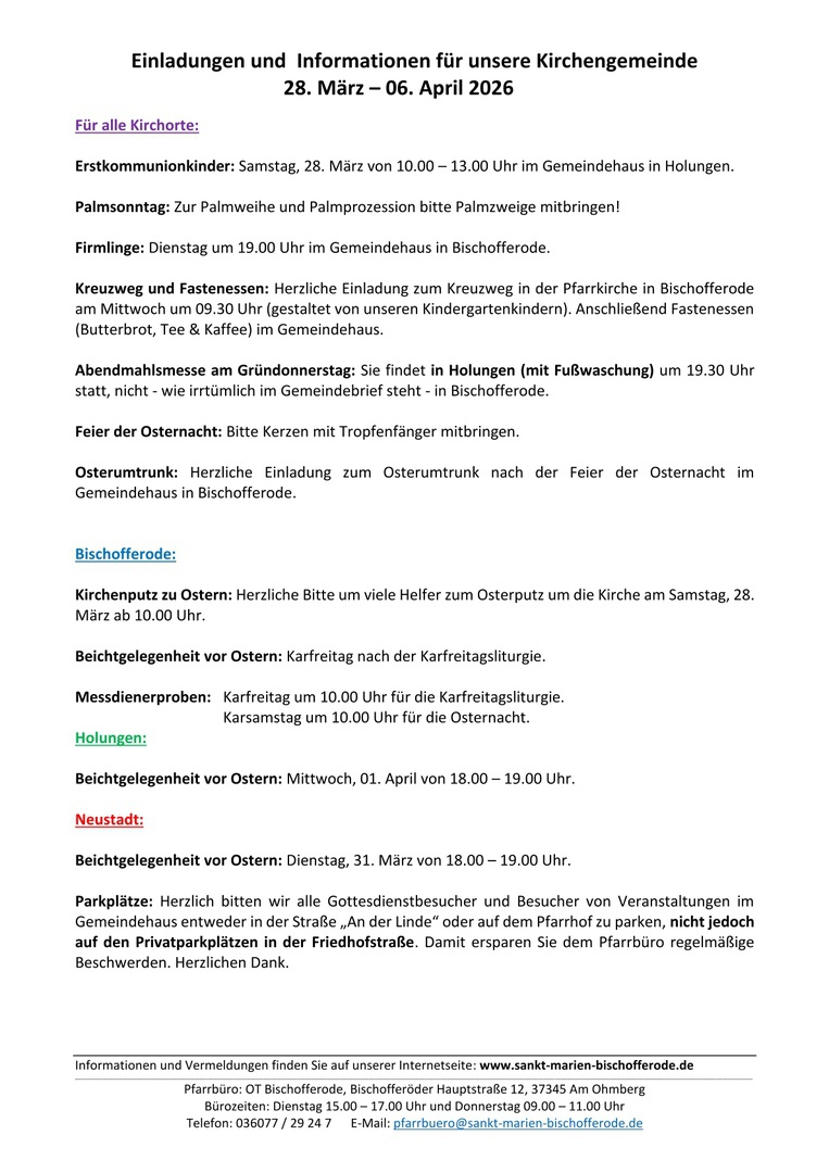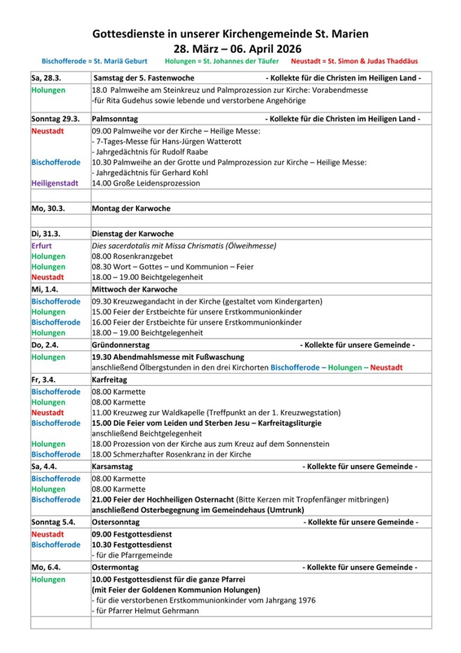 Gottesdienstordnung & Vermeldung vom: 28.03.-06.04.2026