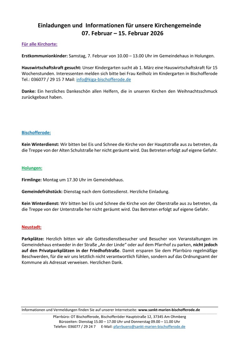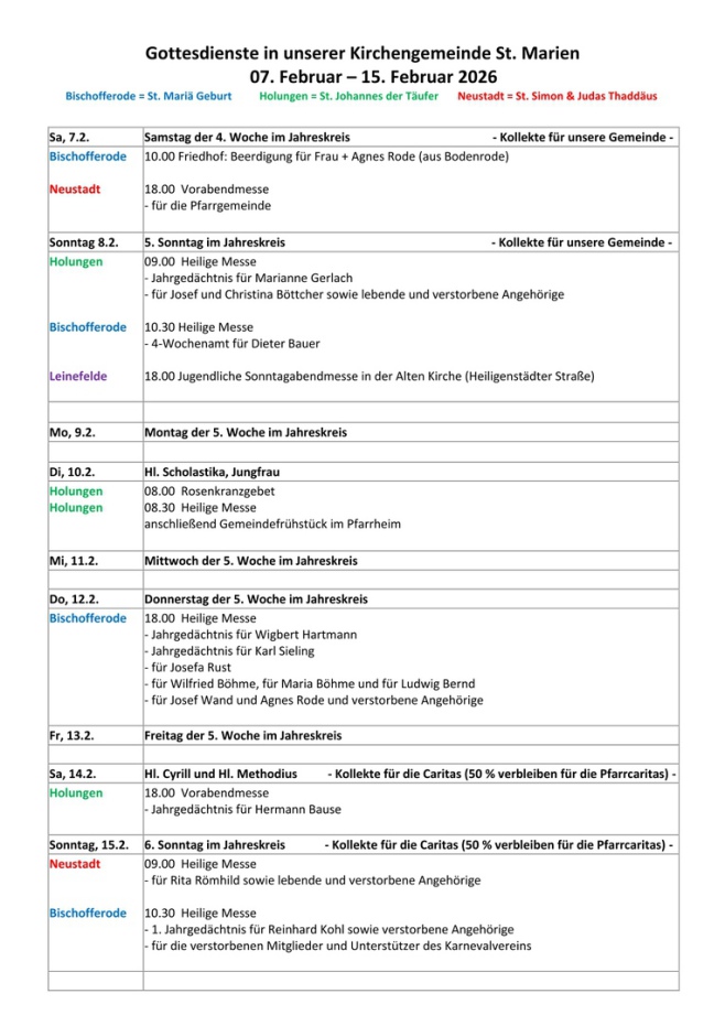 Gottesdienstordnung & Vermeldung vom: 07.02.-15.02.2026