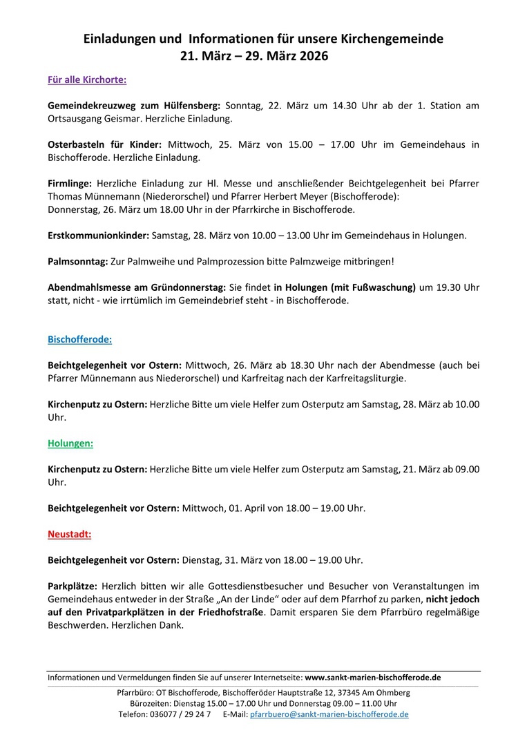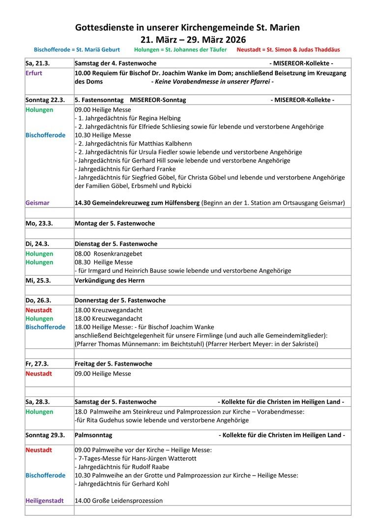 Gottesdienstordnung & Vermeldung vom: 21.03.-29.03.2026