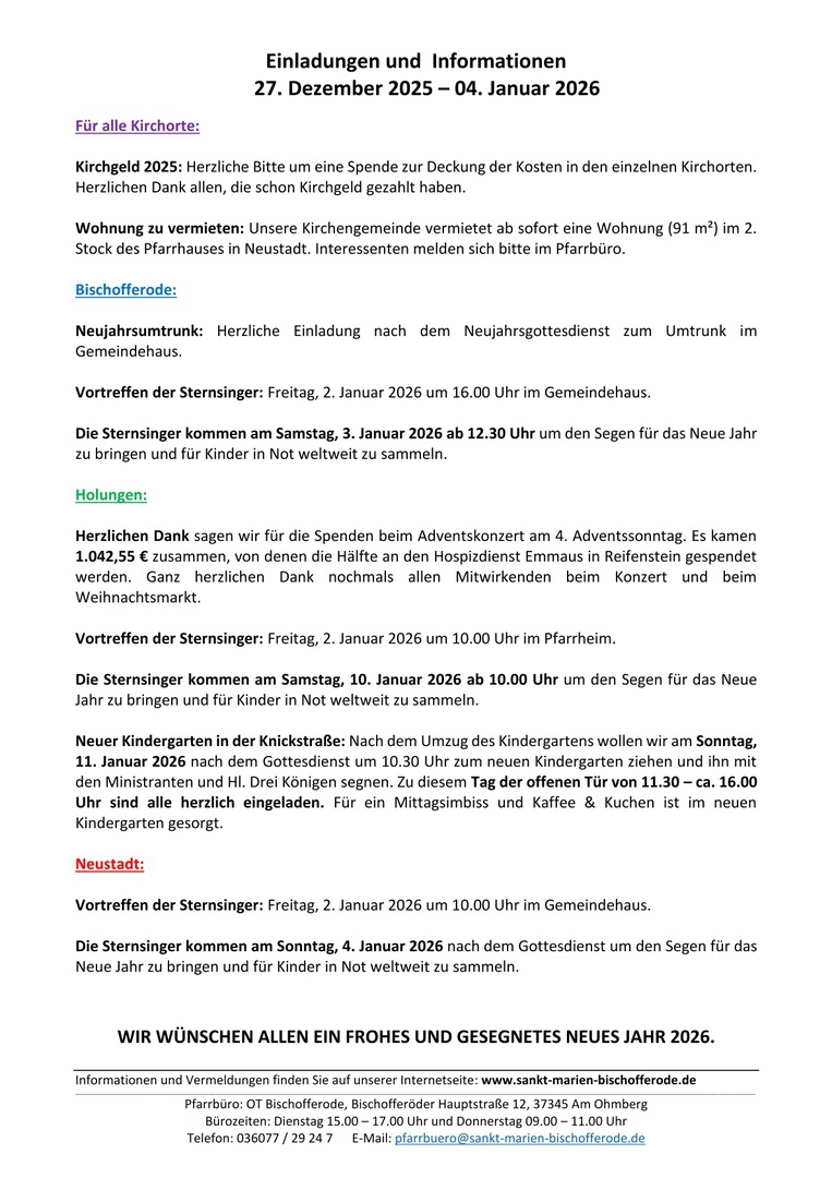 Gottesdienstordnung & Vermeldung vom: 28.12.2025 - 04.01.2026