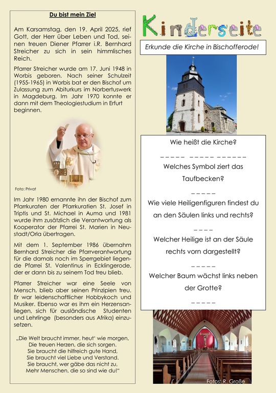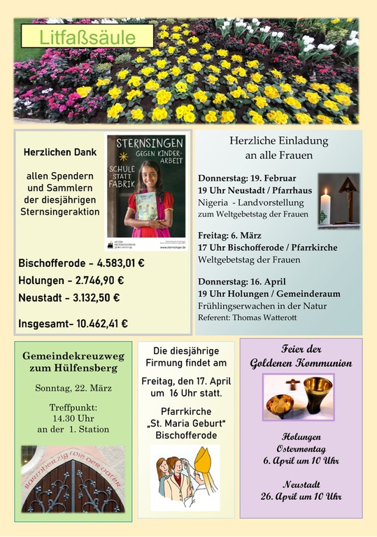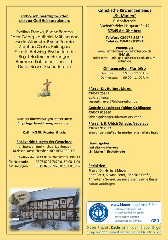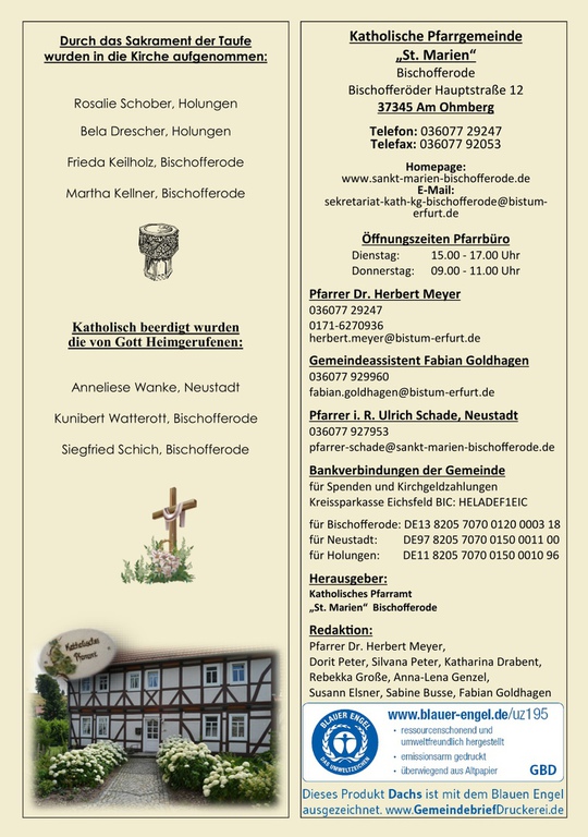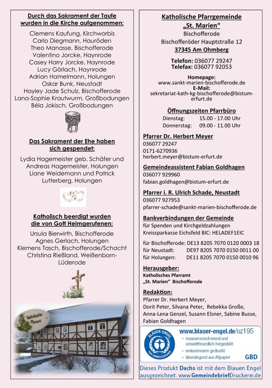 Für die Gestaltung des Pfarrbrief´s sucht das Pfarrbrief-Team immer aktuelle Themen, Beiträge und freut sich auf rege Unterstützung. Anregungen, Ideen, Wünsche, Beiträge sind gern willkommen.