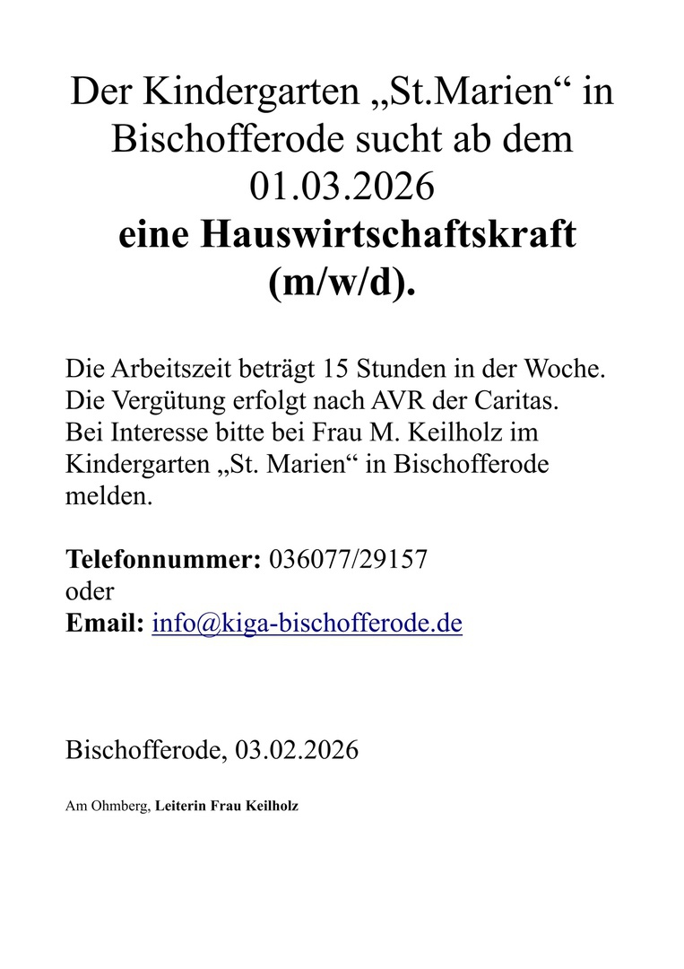 Hier sehen Sie aktuelle Stellenangebote unserer Pfarrgemeinde und Einrichtungen: