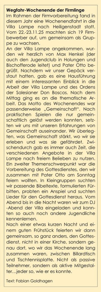 - Montag 20. Oktober 2025 um 17.00 Uhr im Pfarrheim Holungen