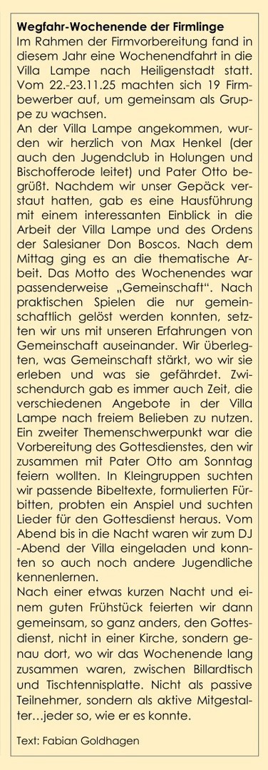 Ein herzliches Dankeschön unseren Firmlingen, die 175,00 € für die Jugendsozialarbeit der Villa Lampe in unserer Region gespendet haben.